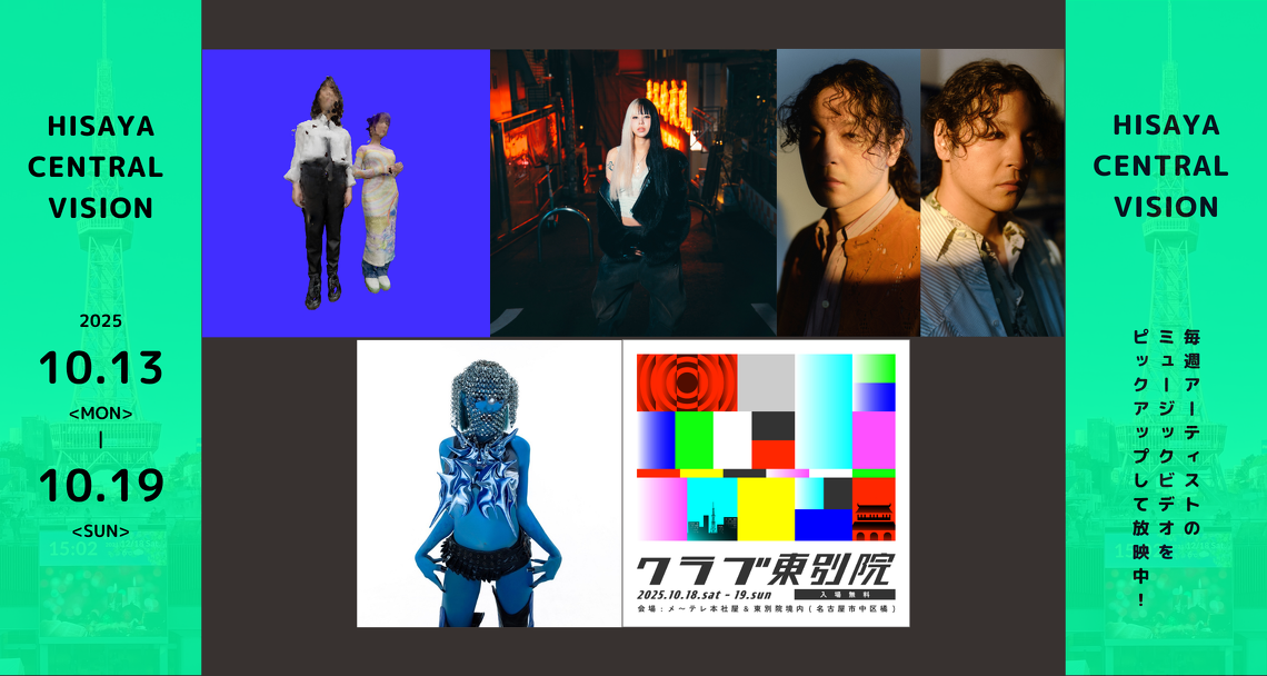 メディアヒロバの大型LED「Hisaya Central Vision」では、毎週アーティストのミュージックビデオをピックアップ。10月13日(月)~10月19日(日)の期間には10月18日(土)、10月19日(日)にメ~テレ本社屋&東別院境内で開催される「ドデ祭」出演アーティストのMVを放映!