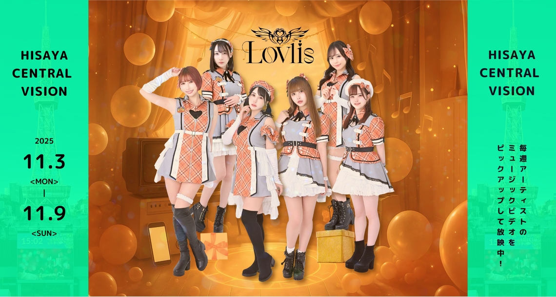 メディアヒロバの大型LED「Hisaya Central Vision」では、毎週アーティストのミュージックビデオをピックアップ。11月3日(月)~11月9日(日)の期間にはLovlisのMVを放映します!