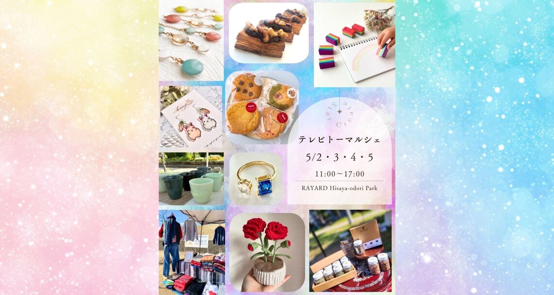 「Star Create テレビトーマルシェ」を開催します♪ ハンドメイドやオリジナルのアクセサリー・雑貨、古着、アート作品、 パッケージ食品などの販売、ワークショップもあります! ぜひ遊びに来てくださいね☆